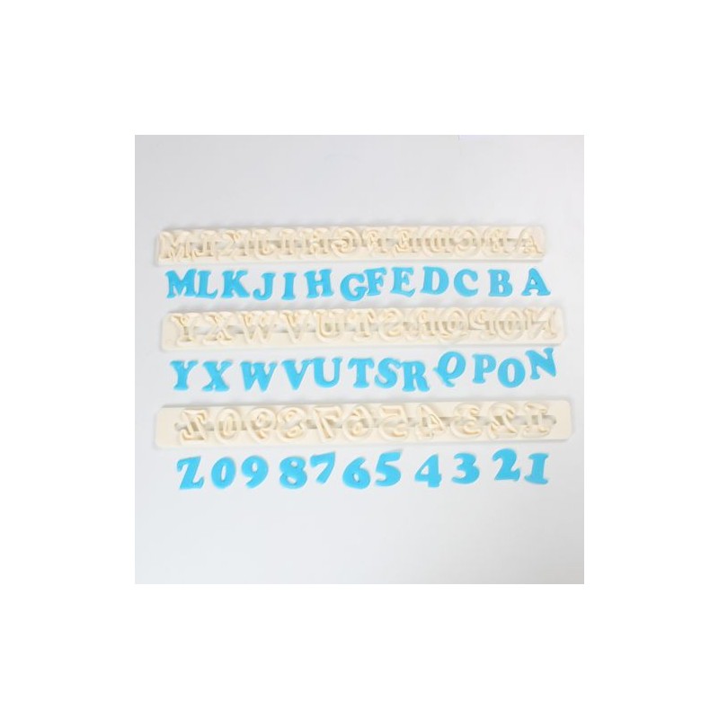 Pásková plastová abeceda na veľké písmená abecedy + čísla, výška písmen 15 mm. Materiál: vhodný pre styk s potravinami