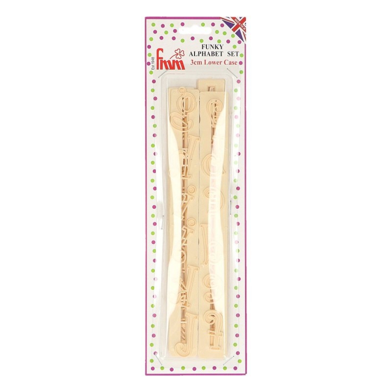 Ďalší typ písma patchworkových vykrajovačov pre aplikáciu na modelovacie hmoty, v prevedení FUNKY.