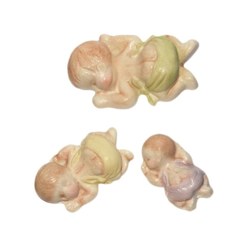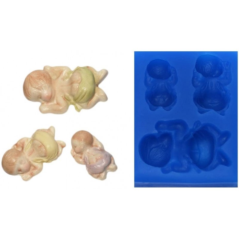 Pružná silikónová forma na 3 veľkosti ležiacich bábätiek, možno použiť na všetky typy modelovacích hmôt, čokoládu, maslo, chlebové cesto, keramiku, vosk atď. Vo forme je možné mraziť i piecť do 210°C. Rozmery od 57x32x12mm - najväčšie bábätko, ďalšie 45 a 40 mm. Materiál: potravinársky silikón Výrobca: First impression