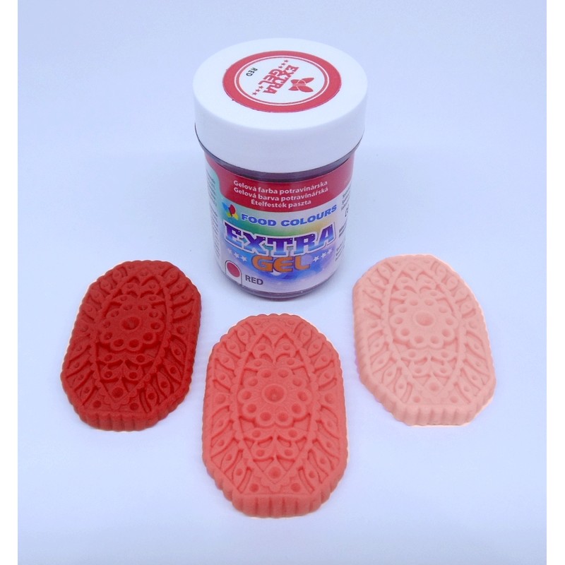 Potravinárska farba s extra výdatnosťou na farbenie modelovacích hmôt, krémov, plniek, atď. Hmotnosť: 35g Gélová farba extra sýta potravinárska jedlá Zloženie: farbivá (E129, E122) glukózový sirup, zahusťovadlo E1422, voda, konzervanty E202, E211, kyselina citrónová, aróma. Potravinárske farby, ktoré nie sú určené na priamu spotrebu. Farbivo E129, E122 môže mať nepriaznivý vplyv na aktivitu a pozornosť detí. Dávkovanie 0,5 - 2 g / kg Bezlepkový produkt Vyrobené v EU