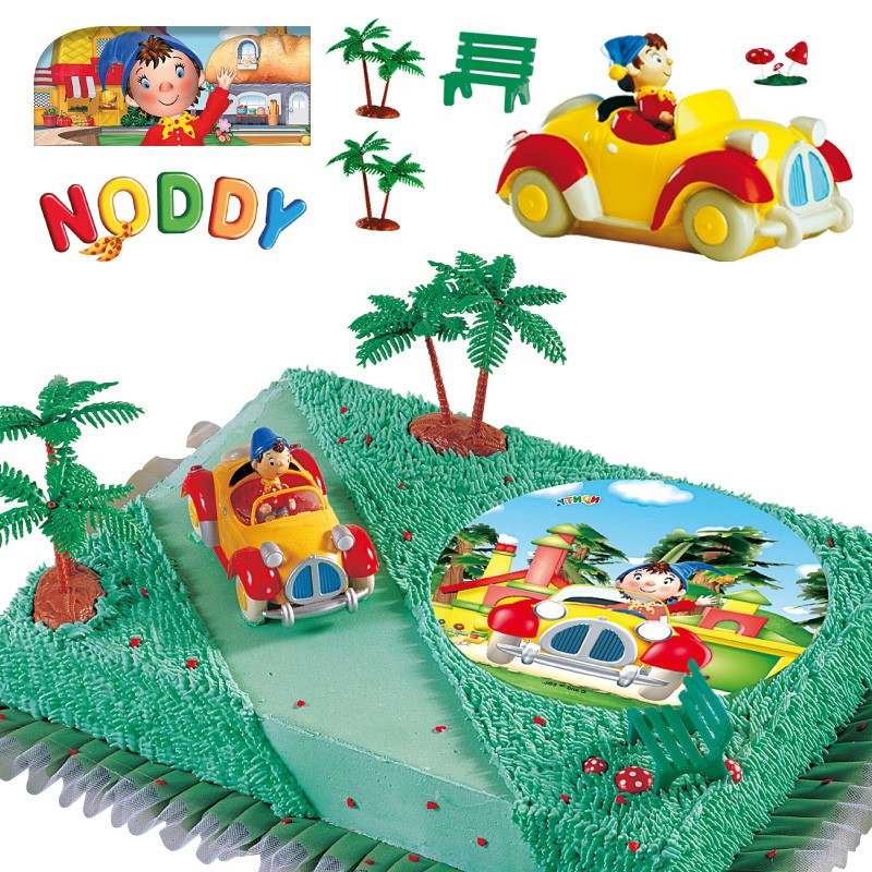 Nejedlá dekorácia. Sada obsahuje: autíčko s Noddym, lavičku, 2x palmu a hríbiky Materiál: zdravotne nezávadný plast na dekoračné účely nevhodné pre deti do 3 rokov vyrobené v ES