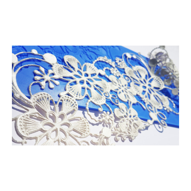 Silikónová forma na jedlú čipku. Veľkosť formy: 350x120mm Materiál: potravinársky silikón najvyššej kvality Pred prvým použitím umyť Výrobca: Crystal Candy