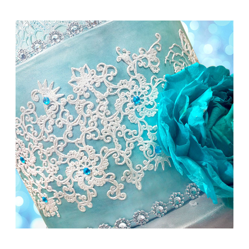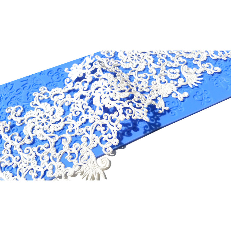 Silikónová forma na jedlú čipku. Veľkosť formy: 350x120mm Materiál: potravinársky silikón najvyššej kvality Pred prvým použitím umyť Výrobca: Crystal Candy