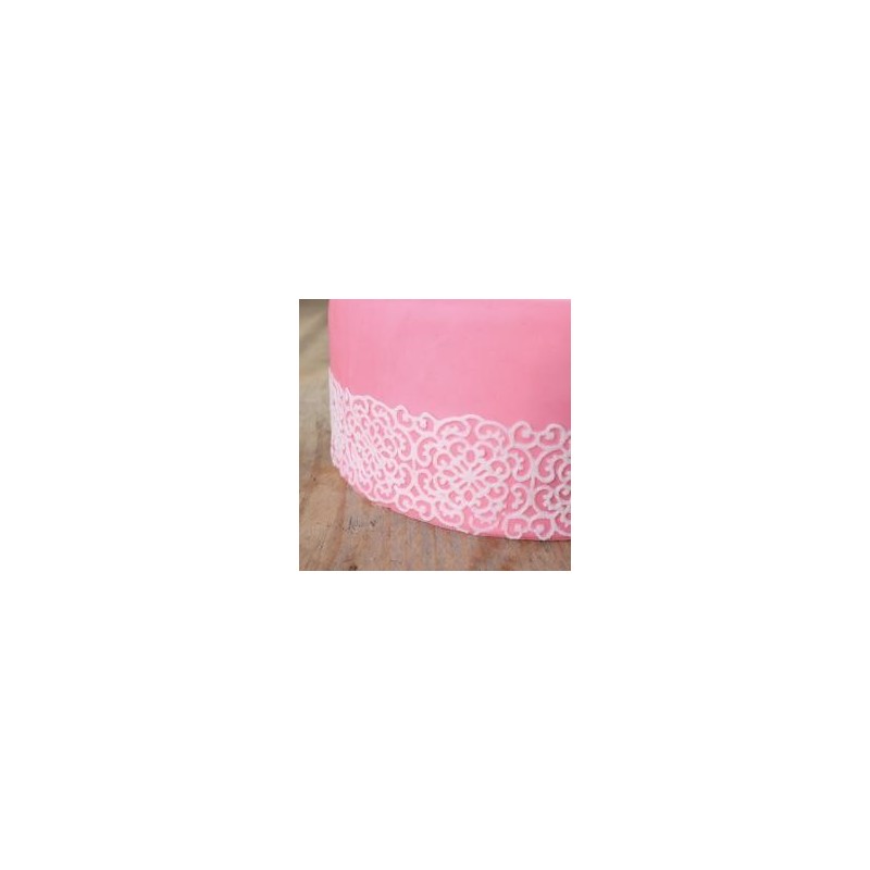 Hmota na výrobu jedlej krajky Príprava: Zmiešajte 50 g zmesi s 50 ml vody. Naplňte čipkovú formu zmesou. Doba schnutia 9-12 minút v peci pri teplote 110 ° C (pece s horúcim vzduchom 100 ° C), alebo (3-4 hodín na vzduchu). Aby sa zabránilo dehydratácii, zmes sa vždy zakryte fóliou a použije sa do 2 hodín. Zloženie: cukor (38%), modifikovaný škrob, zemiakový škrob, glukózový sirup, maltodextrín, kukuričný škrob, emulgátor: E471, zahusťovadlo: E401, E415,E339 farbivá: E170, aróma. Môže obsahovať stopy mlieka, vajcia a orechy. Vhodné pre celiatikov Spotreba: viď obal
