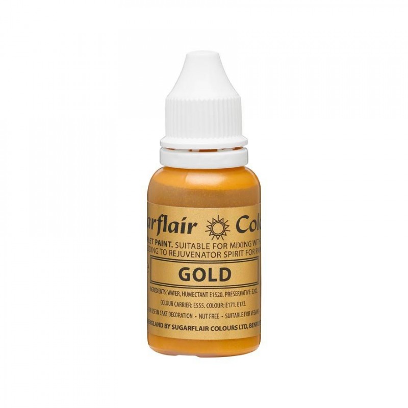 Zafarbite svoj fondán, marcipán a gumovú pastu týmto zlatým tekutým farbivom. Tekuté farbivo je zabalené v praktickej stlačovacej fľaši, čo ešte uľahčí dávkovanie správneho množstva farbiva bez rozliatia. Zmiešajte toto farbivo s liehom, aby ste ho mohli použiť ako farbu na malovanie.