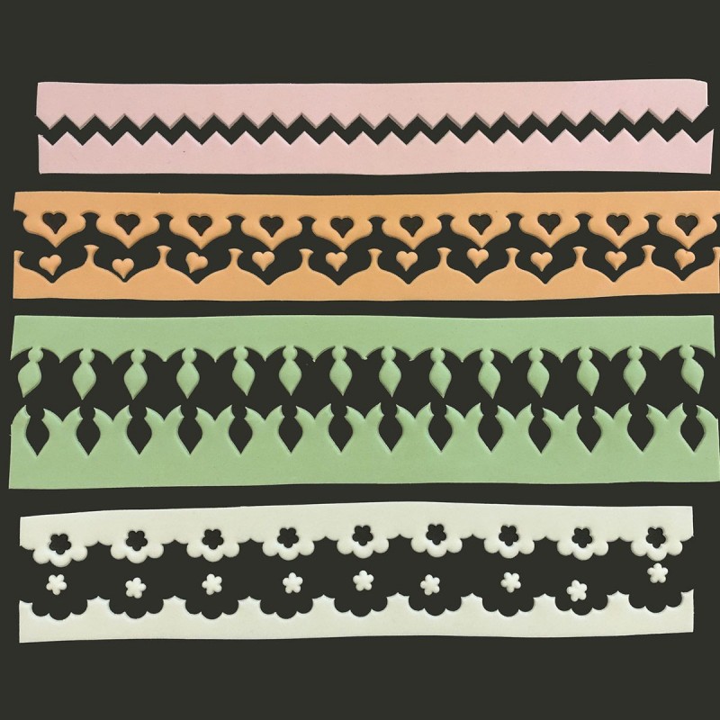Výšku krajky si určíte podľa potreby, vrch krajky môžete odrezať rovný, nožom na marcipán alebo ozdobný, odkrajovacím pravítkom, ako spodnú časť.