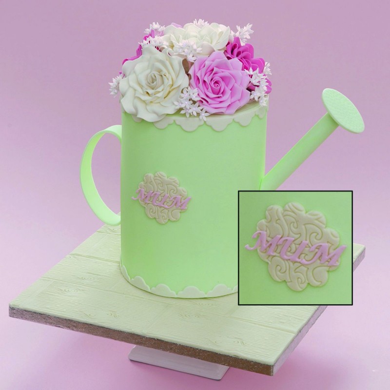 do rozgúľanej hmoty otlačte štruktúru, príp. otlačte štruktúru priamo na potiahnutú tortu.