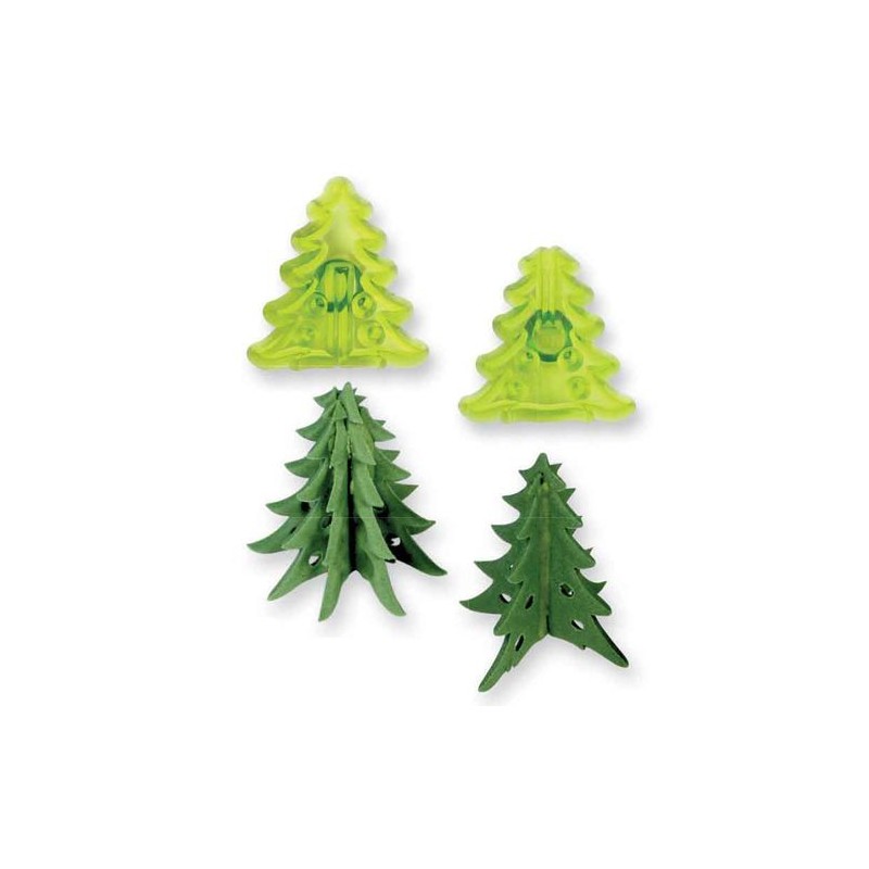 obe vykrojené časti sa do seba založia a tým po vytvrdnutí hmoty vznikne samostatne stojaci stromček
