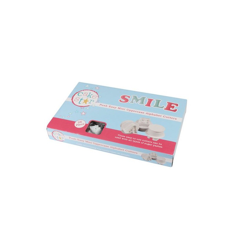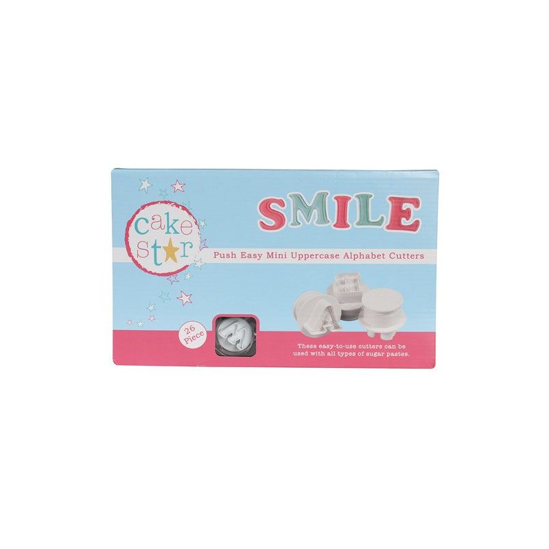 Sada plastových vykrajovačov s piestom veľkosť písmena: 3,2cm S touto sadou vyrobíte písmenká veľkej abecedy ľahko a rýchlo. Stačí vykrojiť, otlačiť a vytlačiť písmenko z vykrajovača. Materiál vhodný pre styk s potravinami Vyrobené v UK
