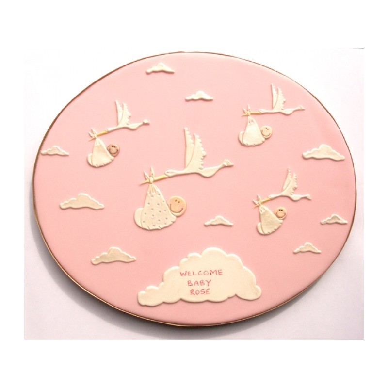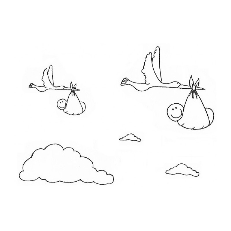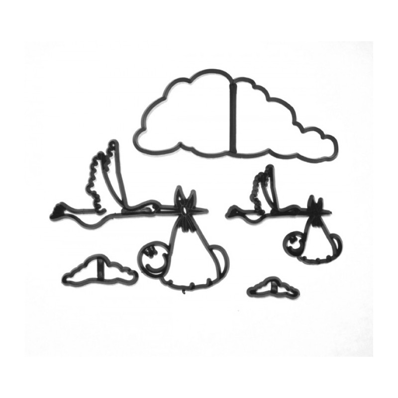Patchworkový vykrajovač s motívom bociana nesúceho bábätko v dvoch veľkostiach + obláčiky.